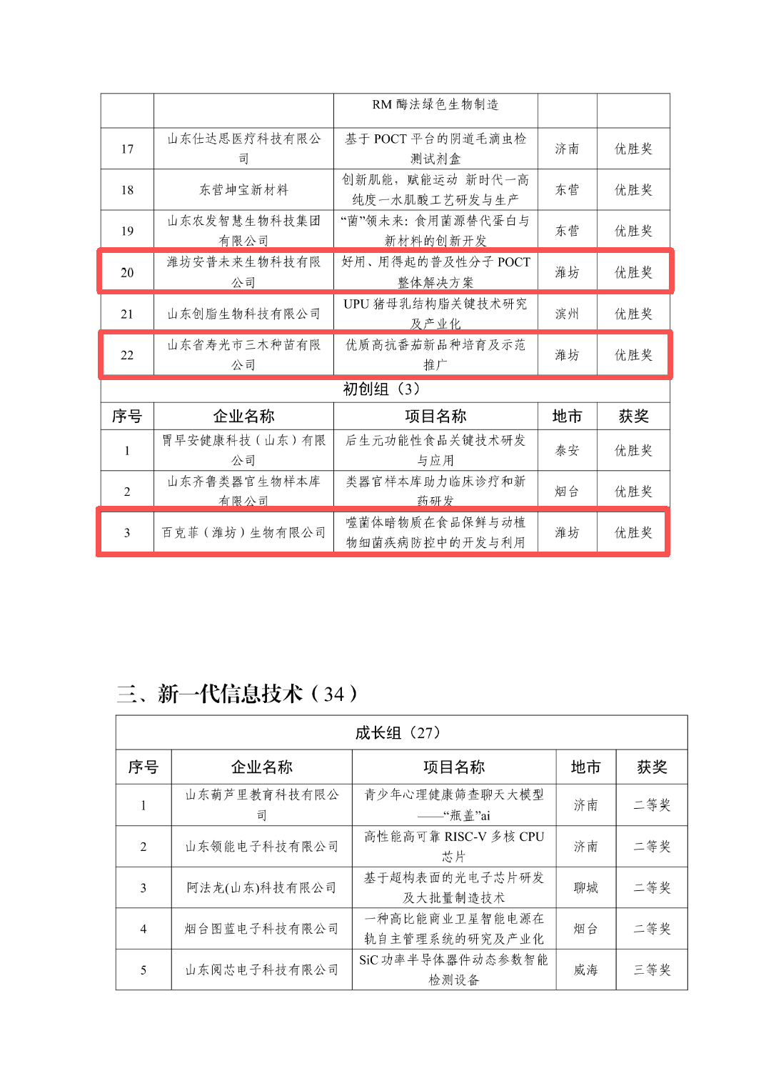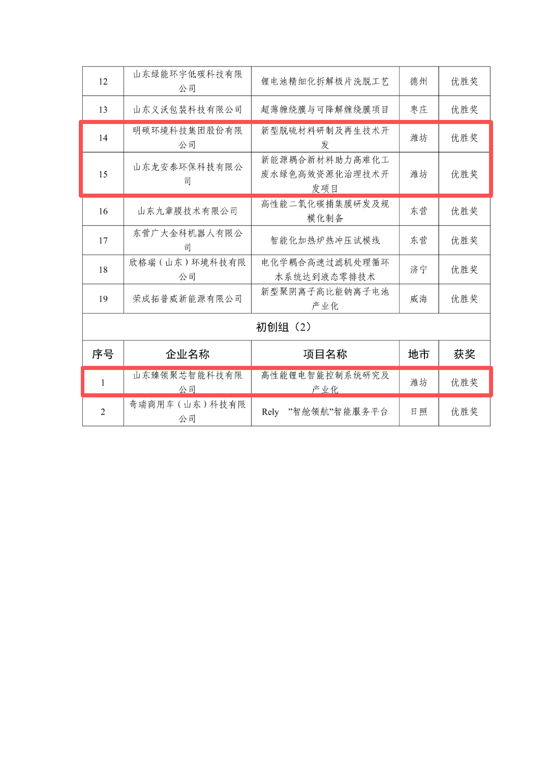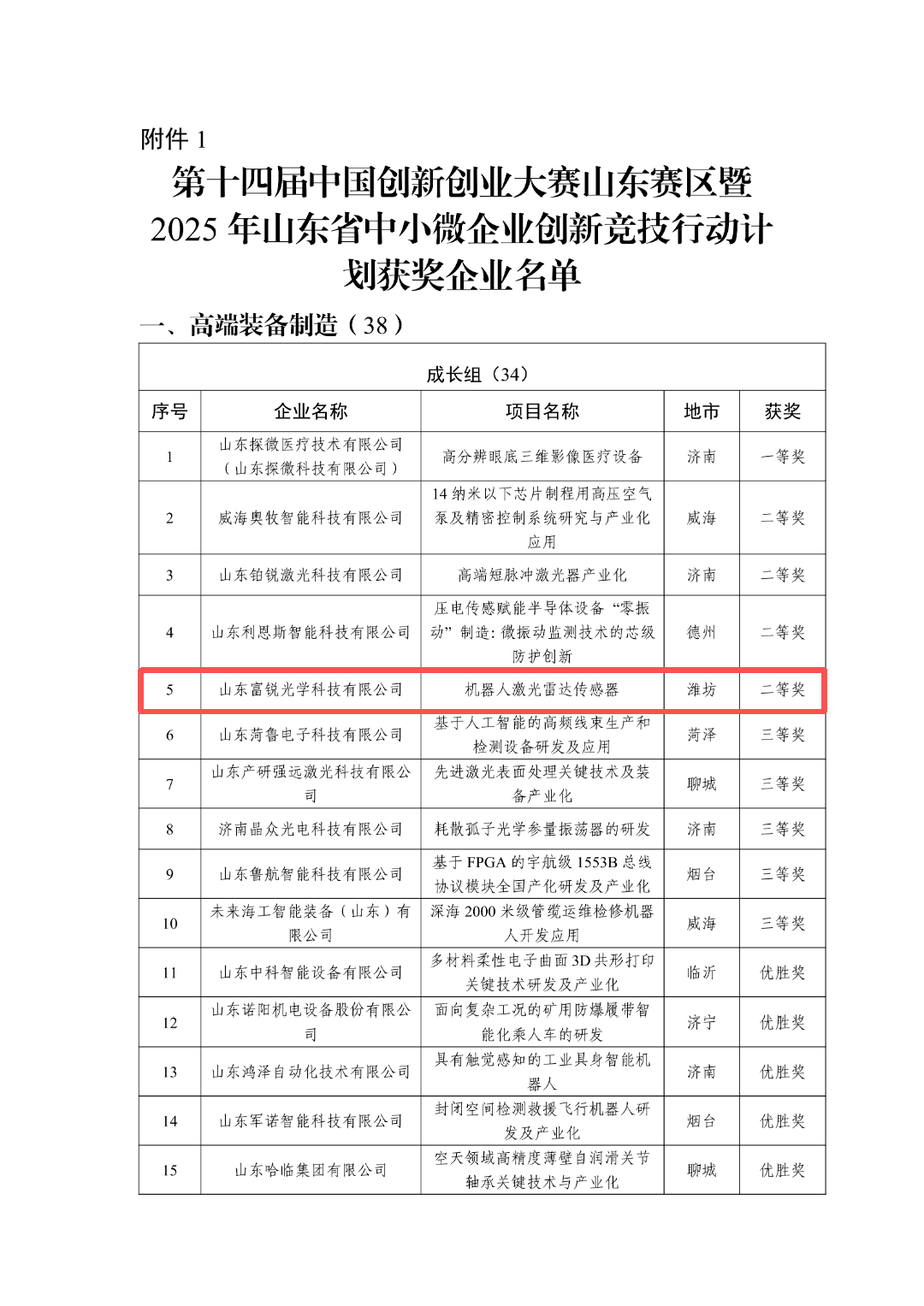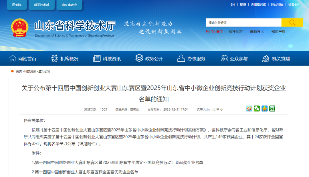 近日,山东省科技厅下发《关于公布第十四届中国创新创业大赛山东赛区暨2025年山东省中小微企业创新竞技行动计划获奖企业名单的通知》。第十四届中国创新创业大赛山东赛区暨2025年山东省中小微企业创新竞技行动计划,共产生149家获奖企业,其中24家获评全国赛优秀企业。潍坊共有24家企业获奖,其中3家获评全国赛优秀企业。
