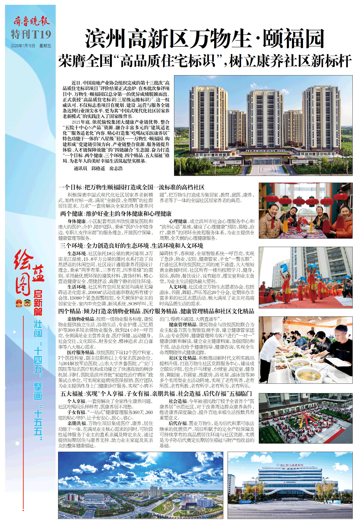 把万物生颐福园打造成全国一流标准的高档社区。积极探索中国式现代化社区居家养老新模式,始终对标一流,满足“全龄段、全周期”的社群居住需求,力求“一套房解决全家的终身康养问题”,把万物生打造成为集居家、教育、就医、康养、养老等于一体的全国社区居家养老的典范。