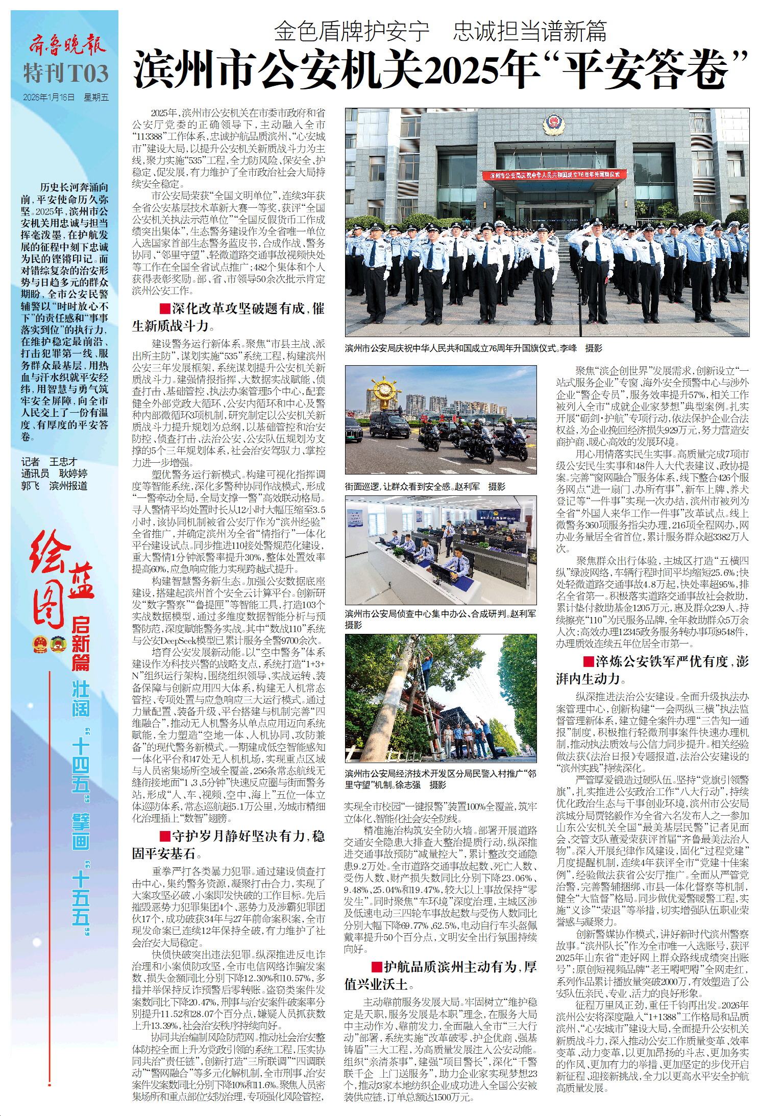 2026年滨州公安将深度融入“1+1388”工作格局和品质滨州、“心安城市”建设大局,全面提升公安机关新质战斗力,深入推动公安工作质量变革、效率变革、动力变革,以更加昂扬的斗志、更加务实的作风、更加有力的举措、更加坚定的步伐开启新征程、迎接新挑战,全力以更高水平安全护航高质量发展。