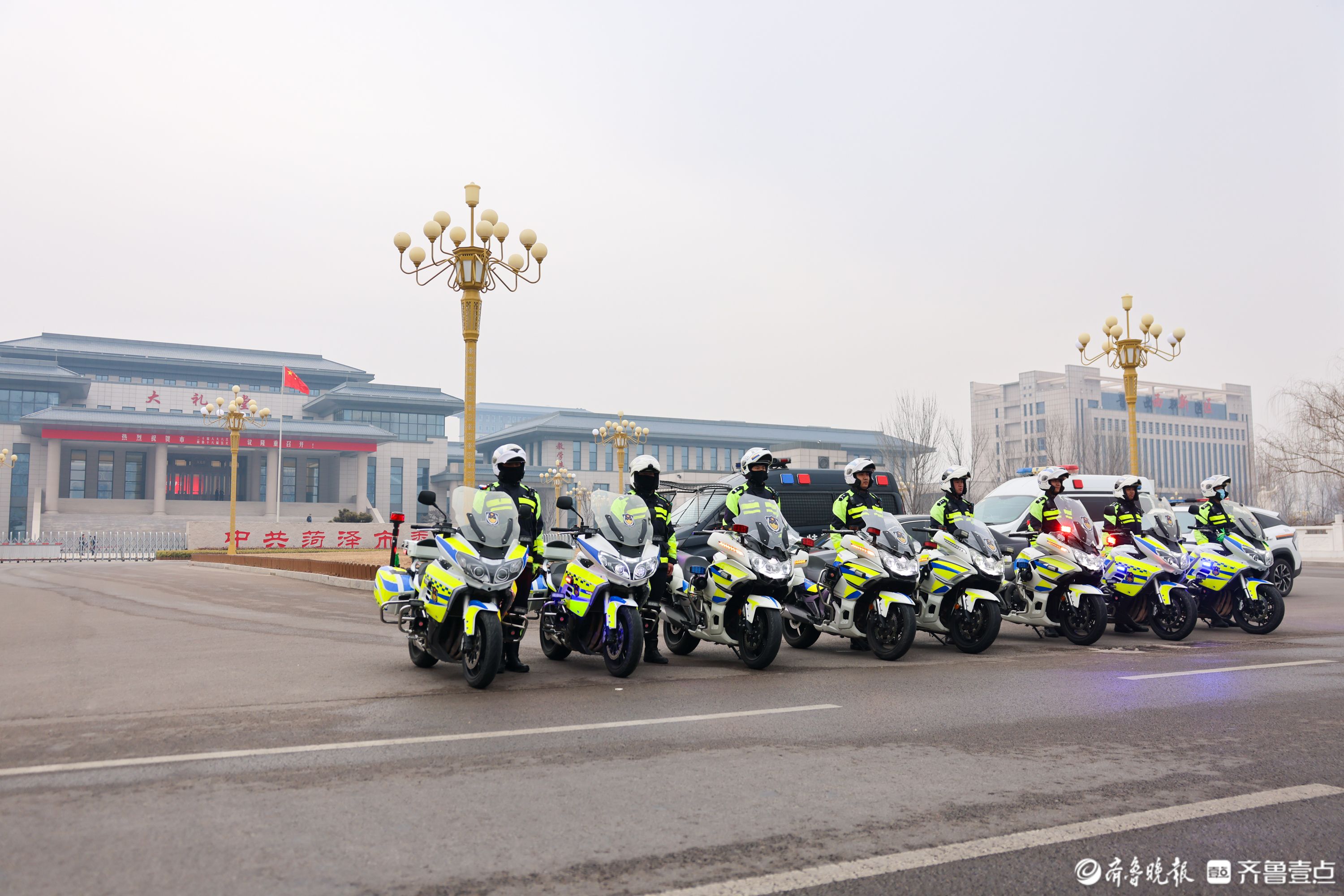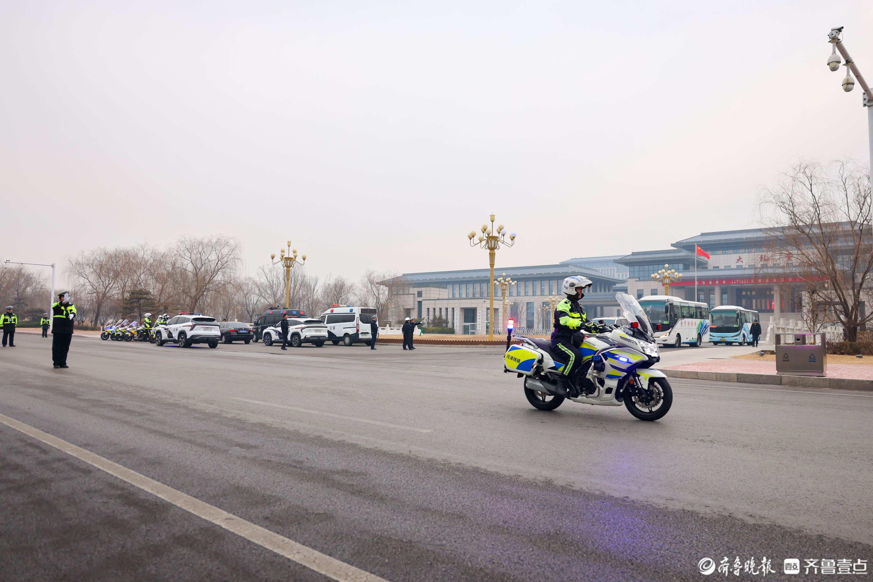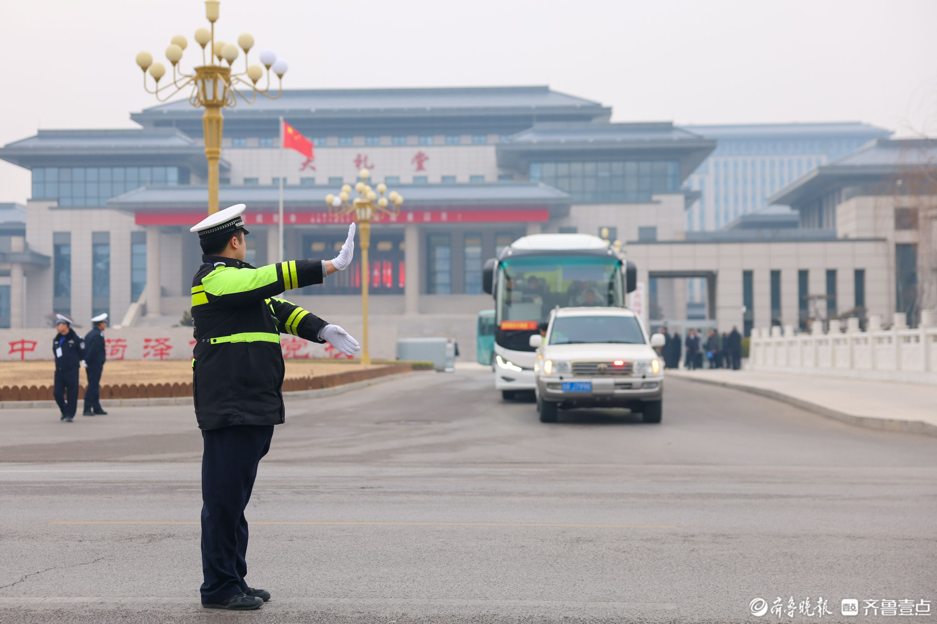 1 月 14 日,菏泽市政协十六届五次会议开幕,菏泽交警全警动员、提前部署,在会场周边及主要路段开启 “护航模式”。