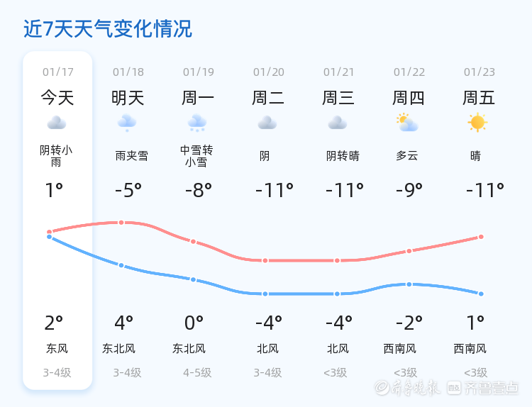 未来三天(1月19日至1月21日),临沂市将迎来持续阴雨雪天气。其中,1月19日为中雪转小雪,气温在-8℃至0℃之间,东北风4-5级;1月20日为阴天,气温在-11℃至-4℃之间,北风3-4级;1月21日阴转晴,气温在-11℃至-4℃之间,北风3级以下。市民需根据天气变化及时添衣保暖,尤其是早晚温差较大,注意预防感冒。