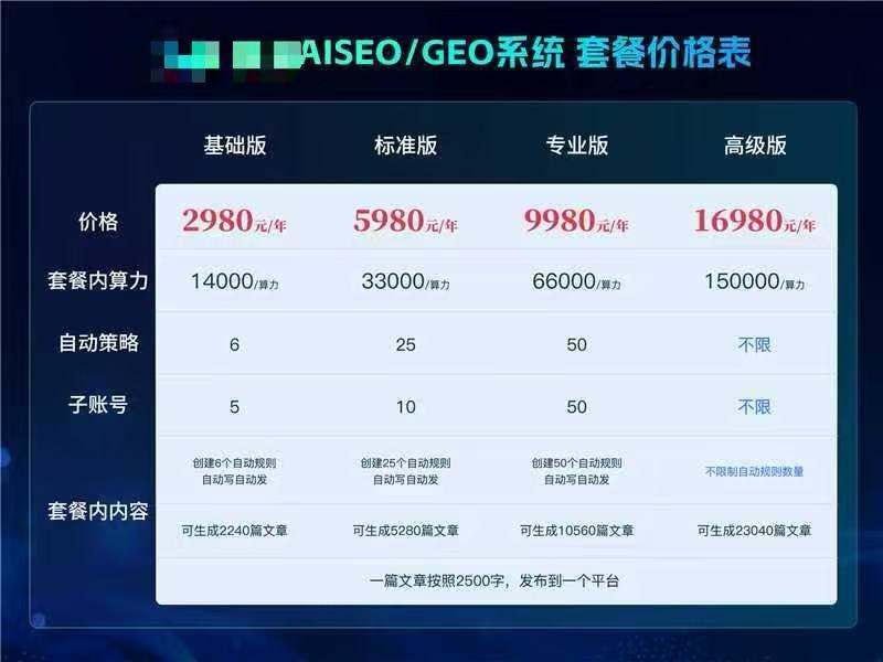 某代理商提供的所谓“生成式引擎优化”服务收费价目表。