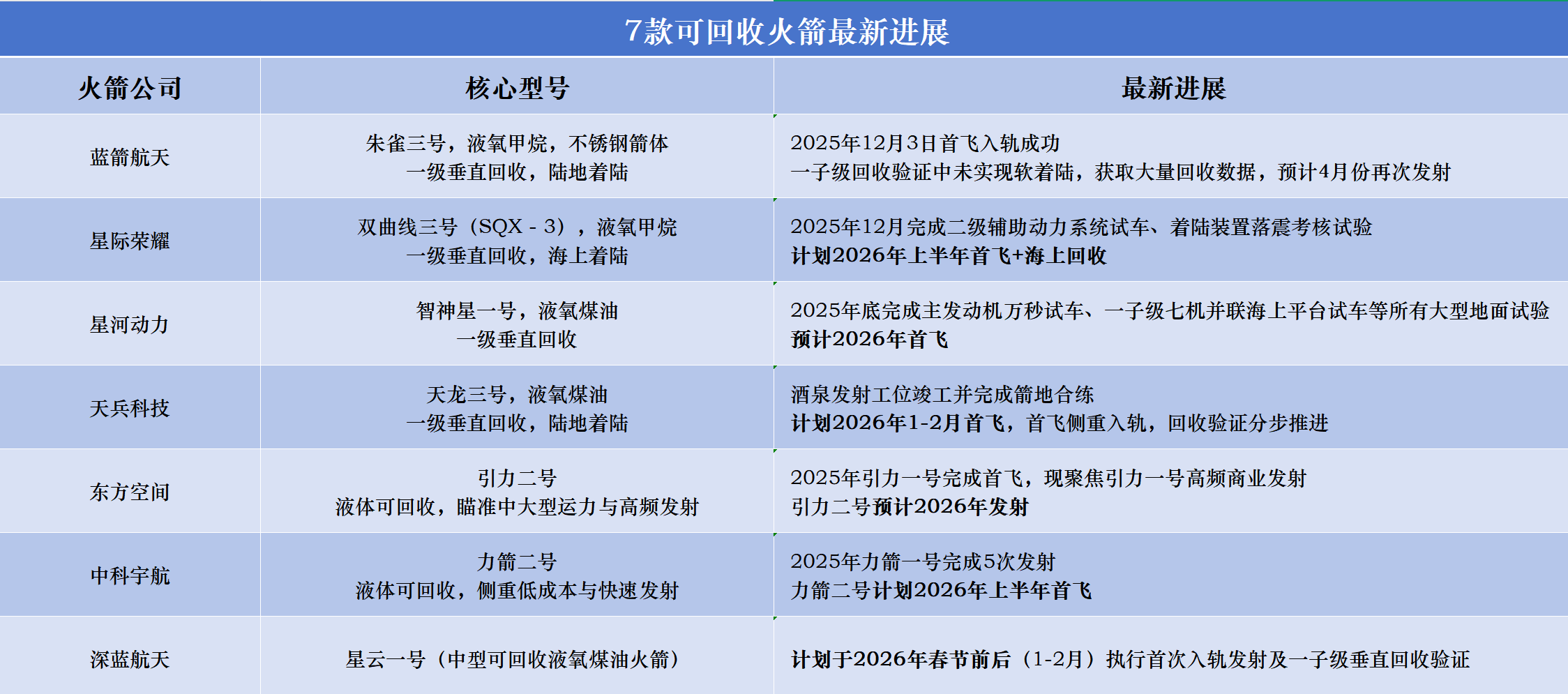 2026年不仅是多个型号的“首飞年”,更是中国商业航天“可重复使用技术攻坚年”。