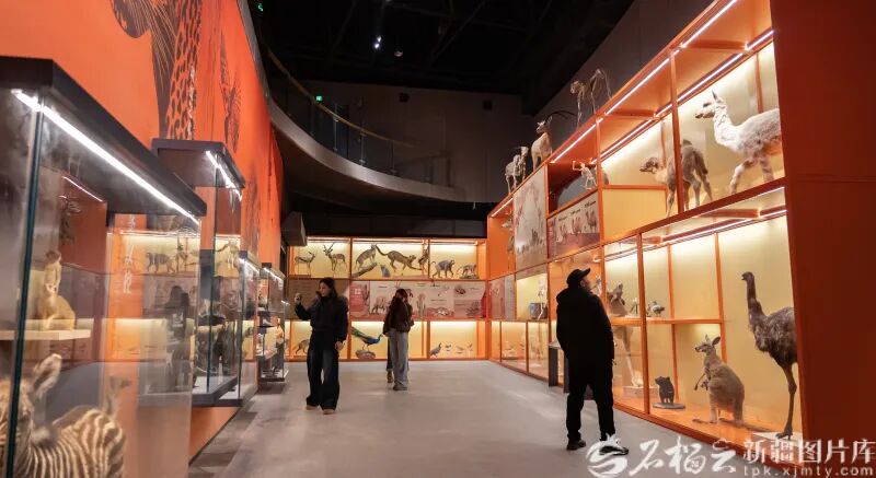 两座场馆内容丰富、各具特色。昆仑驿自然科学博物馆占地面积5500平方米,设有“大美新疆”“缤纷世界”“和谐共生”三大展区,陈列动物标本(模型)1400余件,其中,珍稀物种超过100件。馆内通过生动的场景布局、珍贵的展品与丰富的互动体验,将生态保护理念转化为可感知的公共文化产品,引导参观者在认识自然的过程中,深化对祖国疆域与生态家园的情感认同。