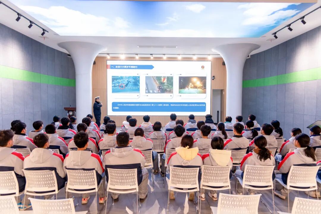 宣讲中,宣传民警结合中学生的认知特点和日常出行规律,以“平安新年,安全相伴”为核心主题,围绕“会走路、会乘车、会骑车”三大核心内容展开详细讲解。