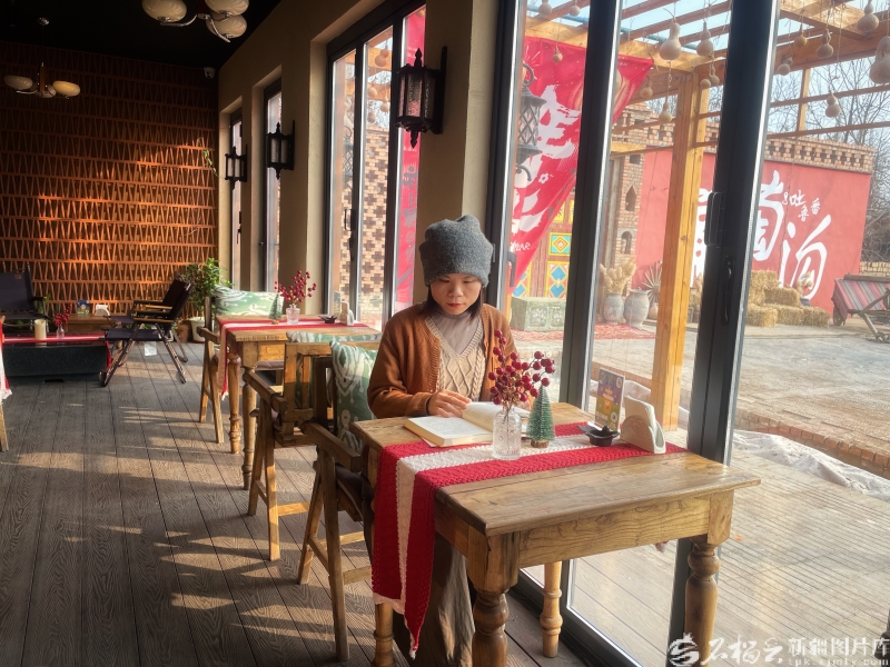 李竹林在吐鲁番市云驿客栈(阿凡提庄园)咖啡馆内享受阅读时光。 李春云摄