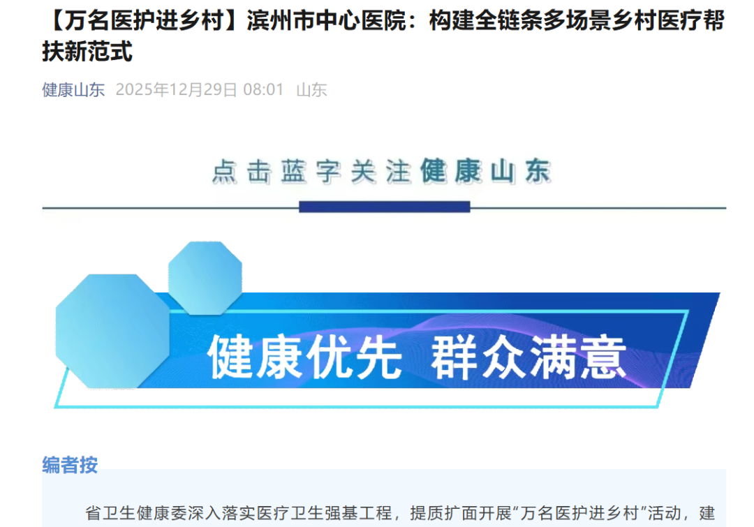蝉联四年 滨州市中心医院微信公众号获评2025年度“品质滨州·新锐政务微信公众号”