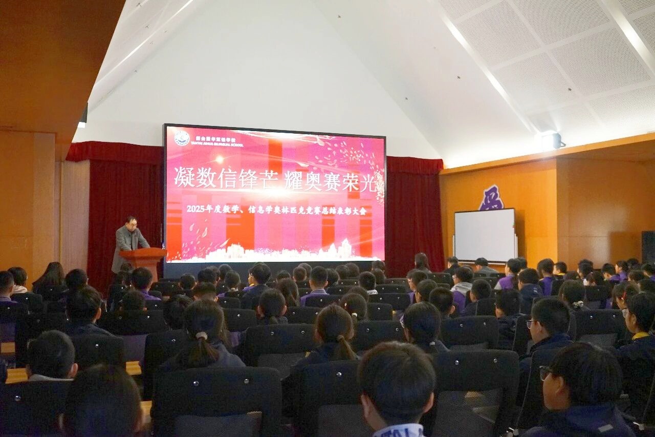 1月15日下午,烟台爱华学校举行2025年度数学、信息学奥林匹克竞赛总结表彰大会。董事长赵乔瑜、校长郭美娟、奥赛教练员顾滨老师、范哲老师、安健侨老师,各学部优生培养负责人以及各类奥赛班全体师生参加了大会。大会由副校长洪志文主持。