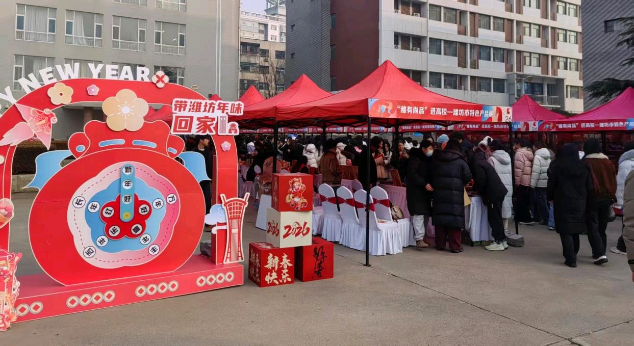 为进一步深化特色产品提升行动,持续擦亮“潍有尚品”品牌,推动更多高校师生深入了解潍坊特色历史文化,1月16日至17日,“带潍坊年味回家”——“好品山东 潍有尚品”迎新春进高校展销活动走进山东经贸职业学院和山东科技职业学院。