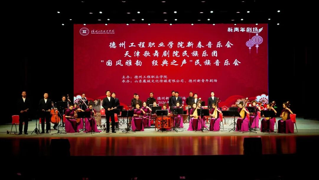 1月16日晚,德州工程职业学院新青年剧场内灯火璀璨、乐声悠扬,天津歌舞剧院民族乐团“国风雅韵 经典之声”民族音乐会在此精彩上演,标志着该校新建成的现代化剧场正式启用并迎来首场对外高水平演出。