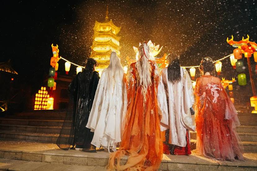 作为本届灯会的热门亮点,丰富多彩的互动演艺将轮番登场。备受瞩目的“天官祈愿妙会”将在灯会期间限时开启,神秘的NPC天官将惊喜现身园区,身着传统华服与游客亲密互动。游客可许下新春愿望,与NPC天官合影留念,留下霸屏朋友圈的新春大片。此外,“福运市集”将新增多项趣味互动游戏,游客参与即可赢取银票,兑换精美礼品,合家收获满满欢乐。