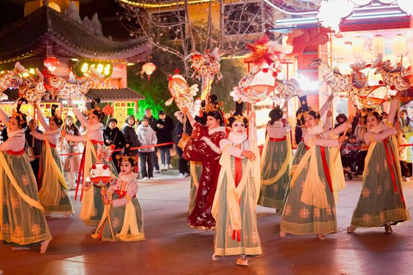 春节期间,济南方特园区还精心布设了多个新春限定主题场景,让浓郁的年味氛围遍布每个角落,游客可沉浸式感受传统春节的热闹与温暖。其中,全新打造的“明灯三千”主题区流光溢彩,灯火与长街纵横交错。每晚特定时刻,节庆广场还将举行“孔明灯放飞仪式”,点点灯火承载美好期许冉冉升空。此外,主舞台“星火盛世宴”主题表演精彩纷呈,让游客全方位感受传统文化魅力与新春喜庆氛围。