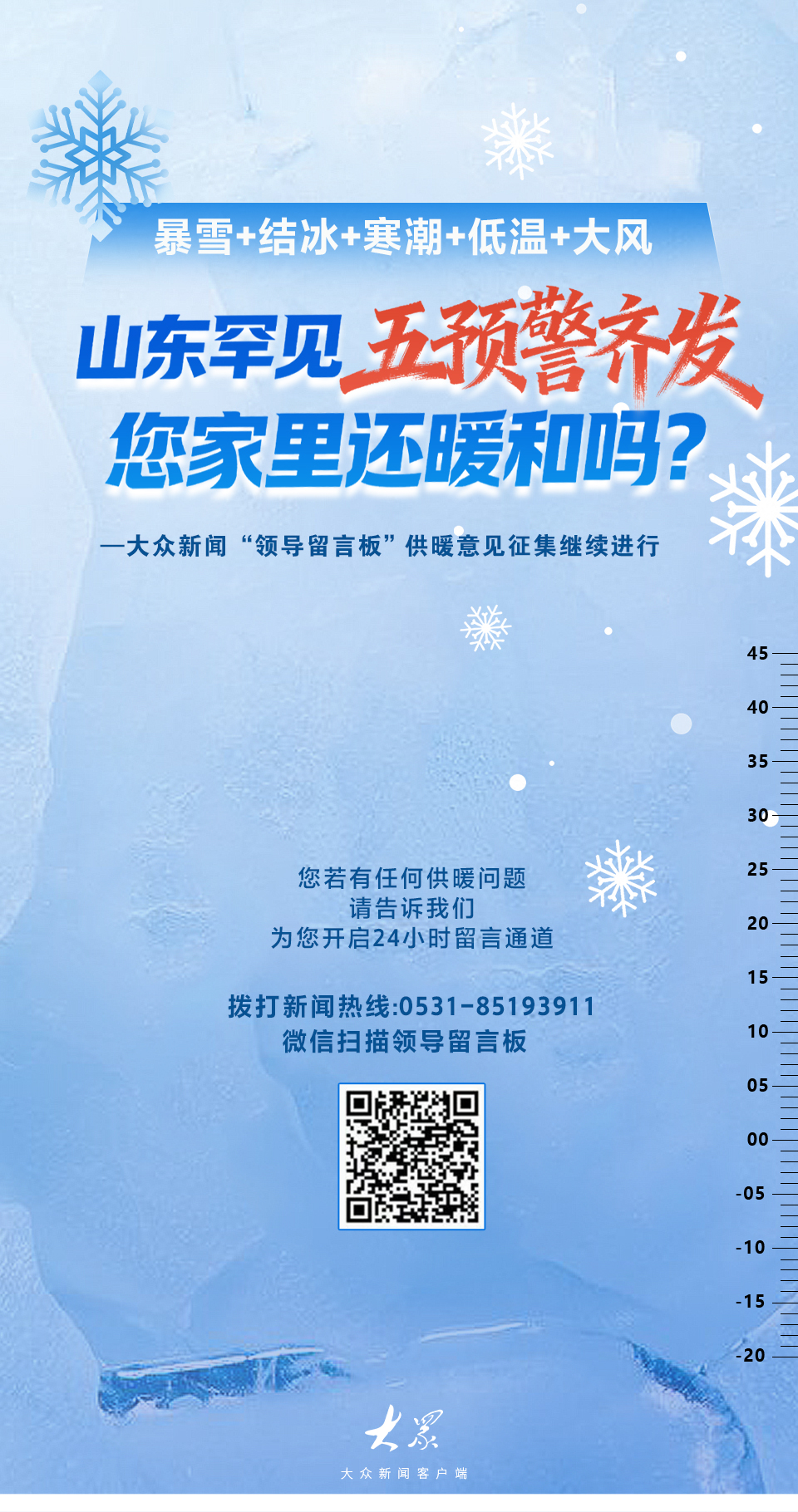 寒潮来袭,为确保广大群众温暖过冬,大众新闻“领导留言板”供暖季意见征集活动继续进行,继续面向全省公众广泛征集供暖相关问题与建议。