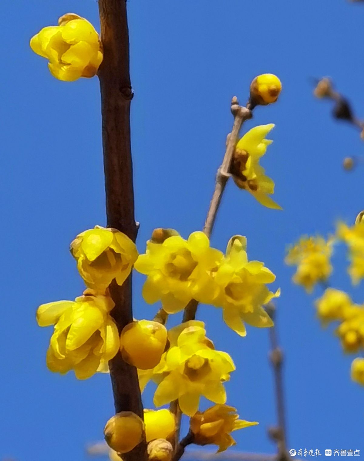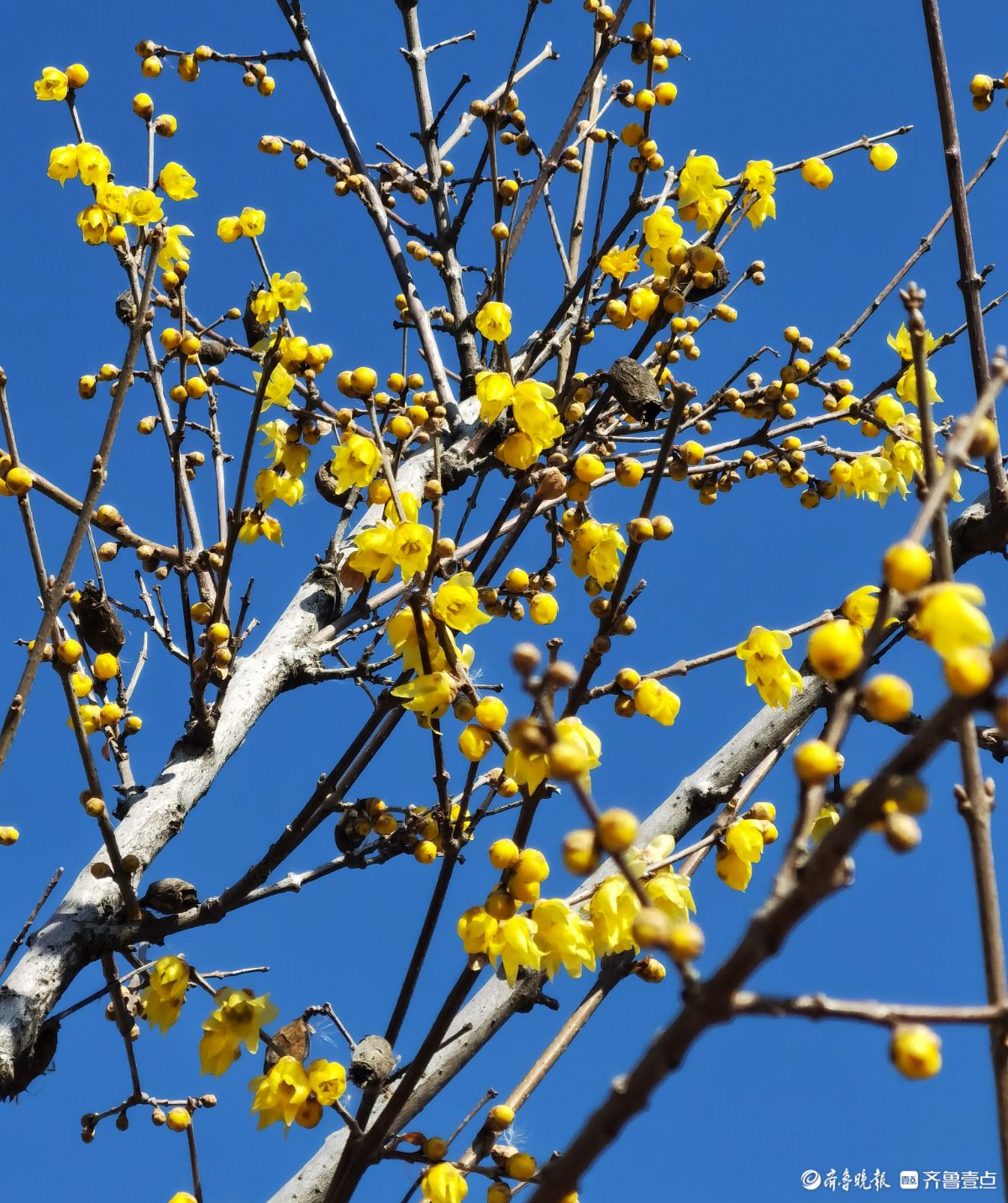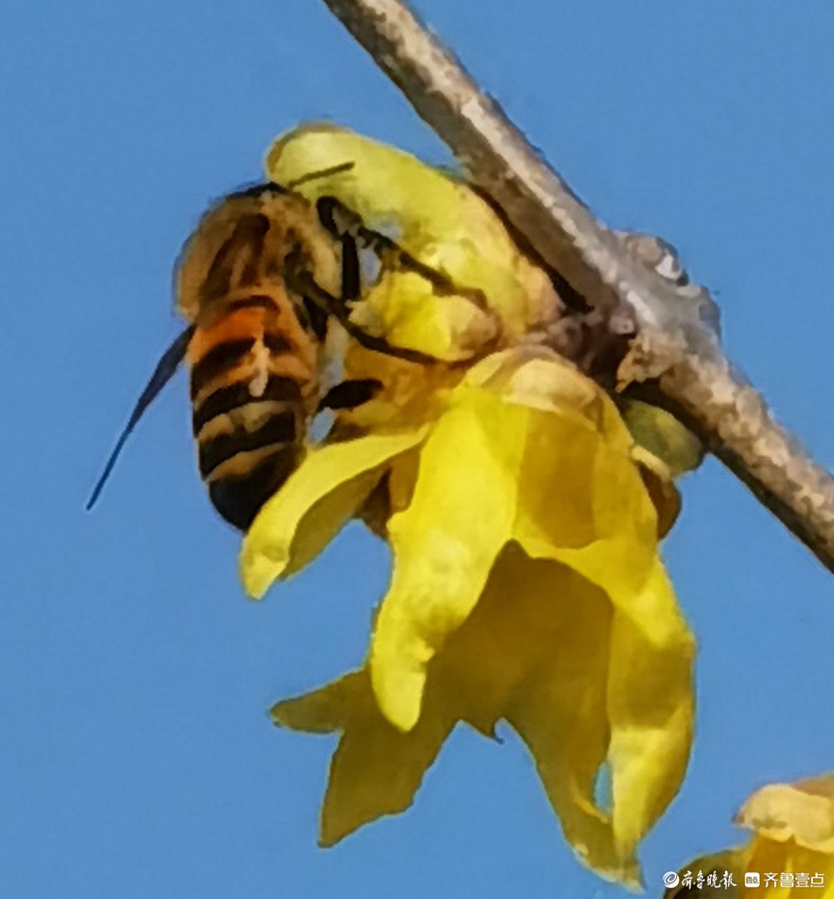 晴日里的药山公园暖意融融,腊梅花开得正盛,金黄花瓣缀满枝头,清冽香气四处弥漫。成群的小蜜蜂循香而来,在花丛中上下翻飞嗡嗡鸣唱,为这冬日景致添了无限生机。于聪玲摄