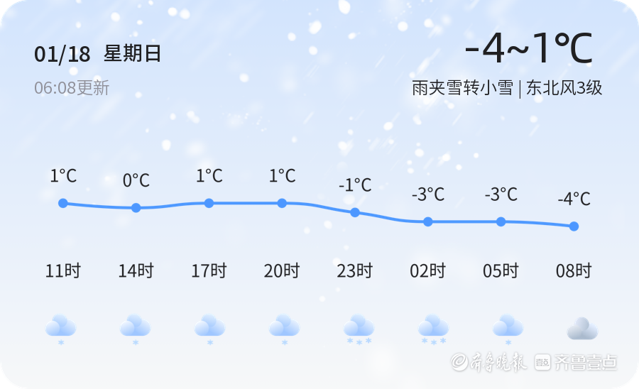 今天是2026年1月18日,农历十一月三十,临沂迎来雨夹雪转小雪天气,气温在-4℃到1℃之间。东北风3级,空气湿度97%,PM2.5指数为50,空气质量良好。由于雨雪天气可能导致道路湿滑,建议市民出行时注意防寒保暖,减速慢行,保持车距,随身携带雨具以备不时之需。