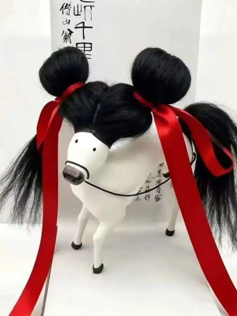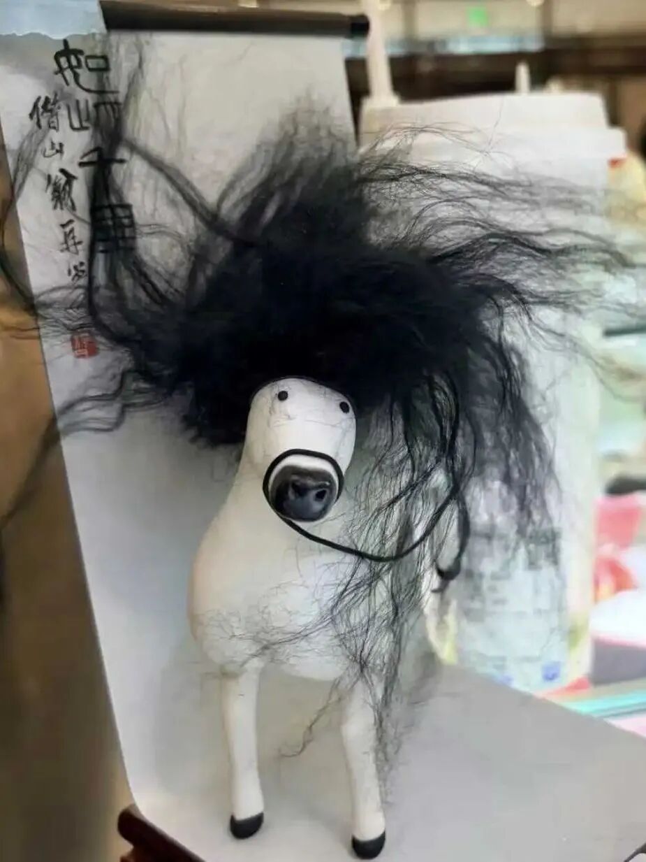 软陶小马“马彪彪”黑白两色的马身看着平平无奇,小圆点眼睛透着一股清澈的呆萌,搭配上随风飞扬的潦草毛发,最关键的就是那头飘逸的长发,总有一种“不顾别人死活的美”。