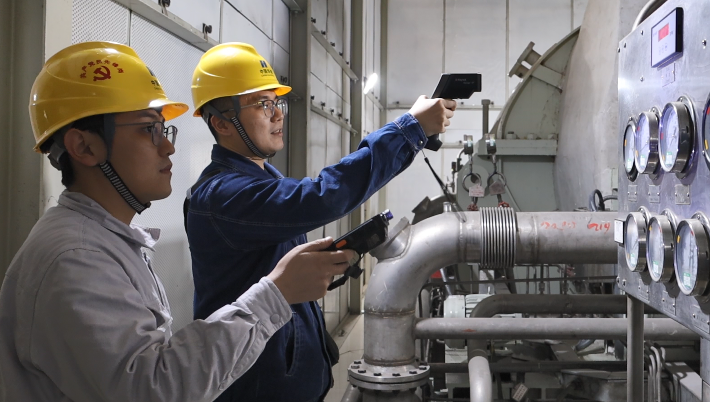 夜渐深,华能临沂电厂内机器轰鸣,这里源源不断地为蓝天热力提供热源。运行部副值班员王振宇手持测温枪和听诊器般的听针,在巨大的锅炉机组间穿行,仔细检查着压力表读数、管线温度和循环水泵的振动频率。