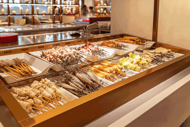 自助餐是24小时不间断的,火锅、烤肉、水果、饮料,竟然还能吃到淄博烧烤!五花肉烤得滋滋响,撸一串,整个人都满足了。