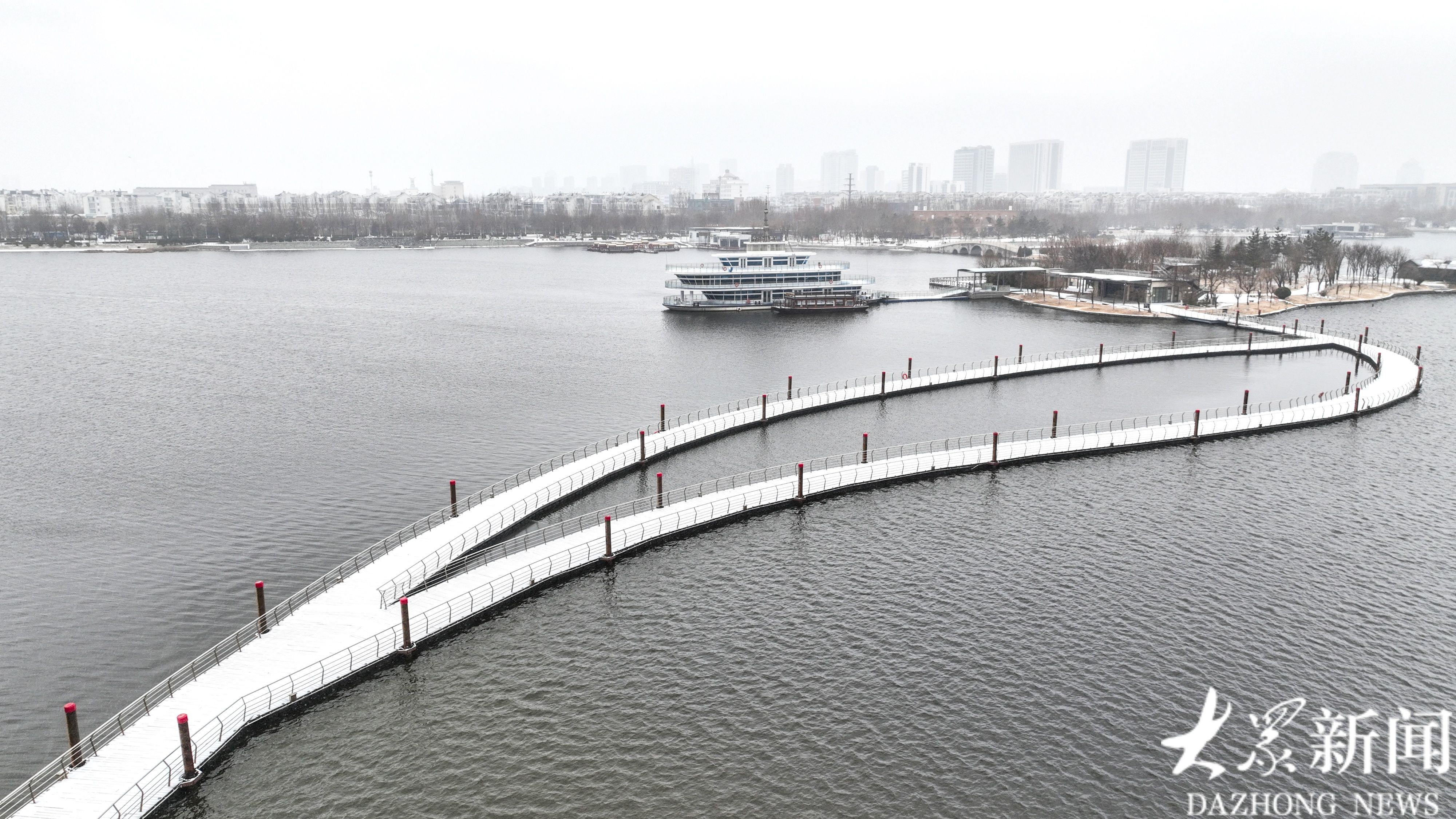 1月18日,一场瑞雪翩然而至,为山东首个黄河文化主题公园——东营清风湖披上素白盛装,将这片水域晕染成一幅灵动的水墨丹青。雪落清风湖,是自然馈赠的冬日限定,更是东营独有的诗意盛景。(大众新闻记者任小杰)