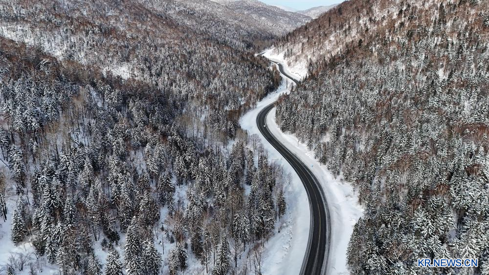한 겨울 야쉐도로에 '겨울 왕국'과 같은 절경이 펼쳐졌다. 해당 도로는 헤이룽장(黑龍江)성 야부리(亞布力) 스키관광리조트, 설향국가삼림공원 등 유명한 빙설 관광지와 연결돼 있다. 2026.1.16