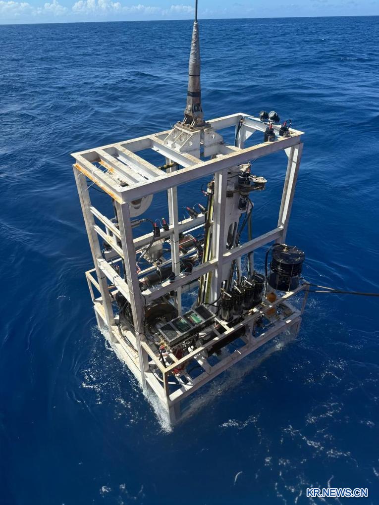 2025년 10월 14일 남중국해 해저 지층 내부에서 3차원 시추 및 현장 모니터링이 가능한 중국 최초 자체 개발 해저 로봇. (광저우 해양지질조사국 제공)