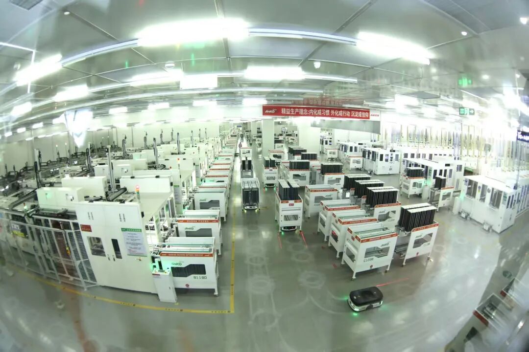 晶科能源制造基地内,上千台AGV无人小车穿梭如织,连廊传输线织就空中走廊,每秒钟生产45片光伏电池,每天下线超390万片光伏电池,并从这里走向全球近200个国家和地区,堪称光伏行业的“超级引擎”。