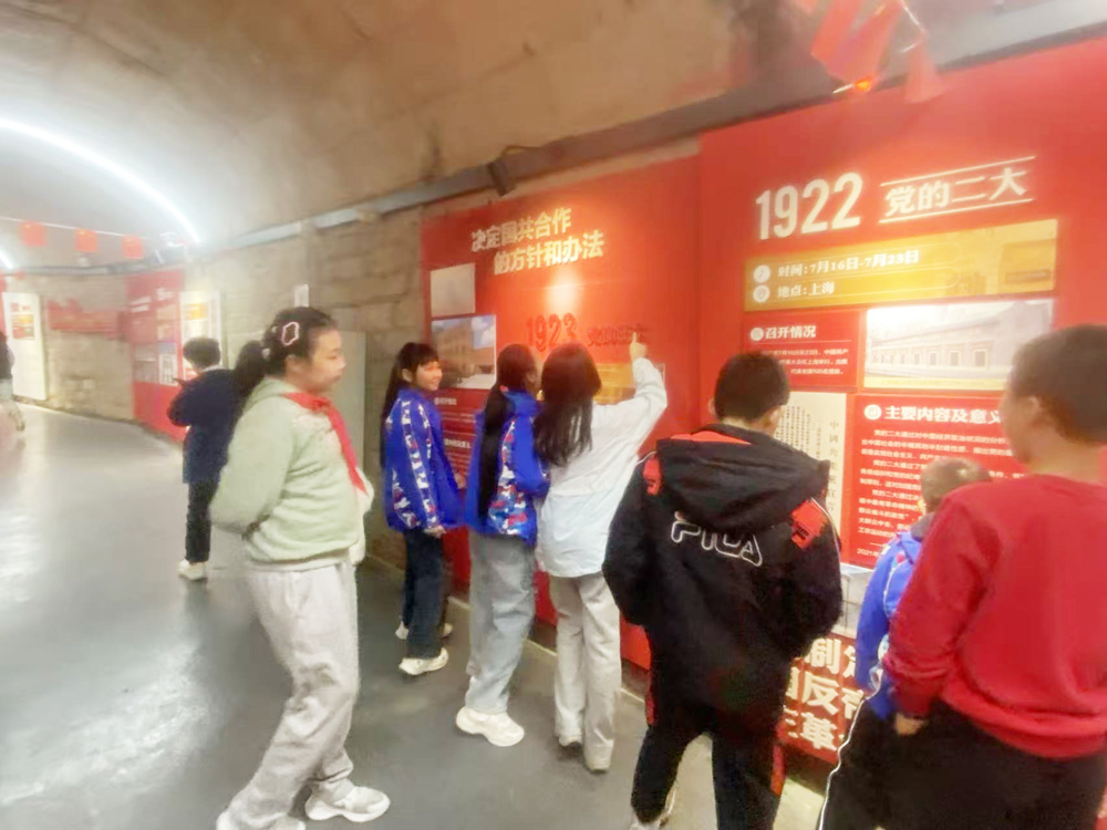 在防空洞入口区域,讲解员为队员们讲解了该防空洞的建设年代、历史背景、功能作用以及在特定时期的意义,将书本上的历史变得可触可感。在充分确保安全的前提下,队员们有序进入防空洞内部进行探访。借助灯光,大家仔细观察了洞体的结构、通风设计、功能性空间划分等遗迹,亲身感受了当年工程的艰巨与人民的智慧。洞内斑驳的墙壁、特殊的构造引发了队员们的阵阵惊叹与思考。