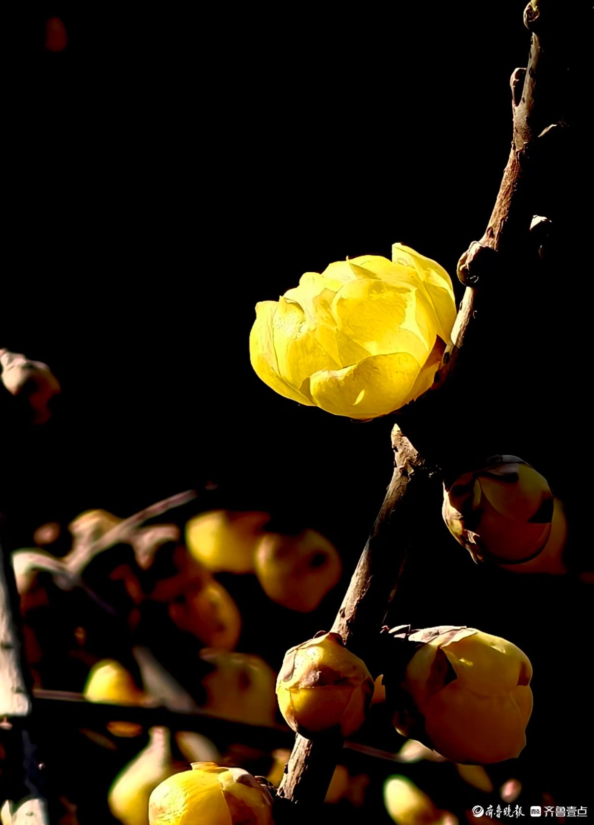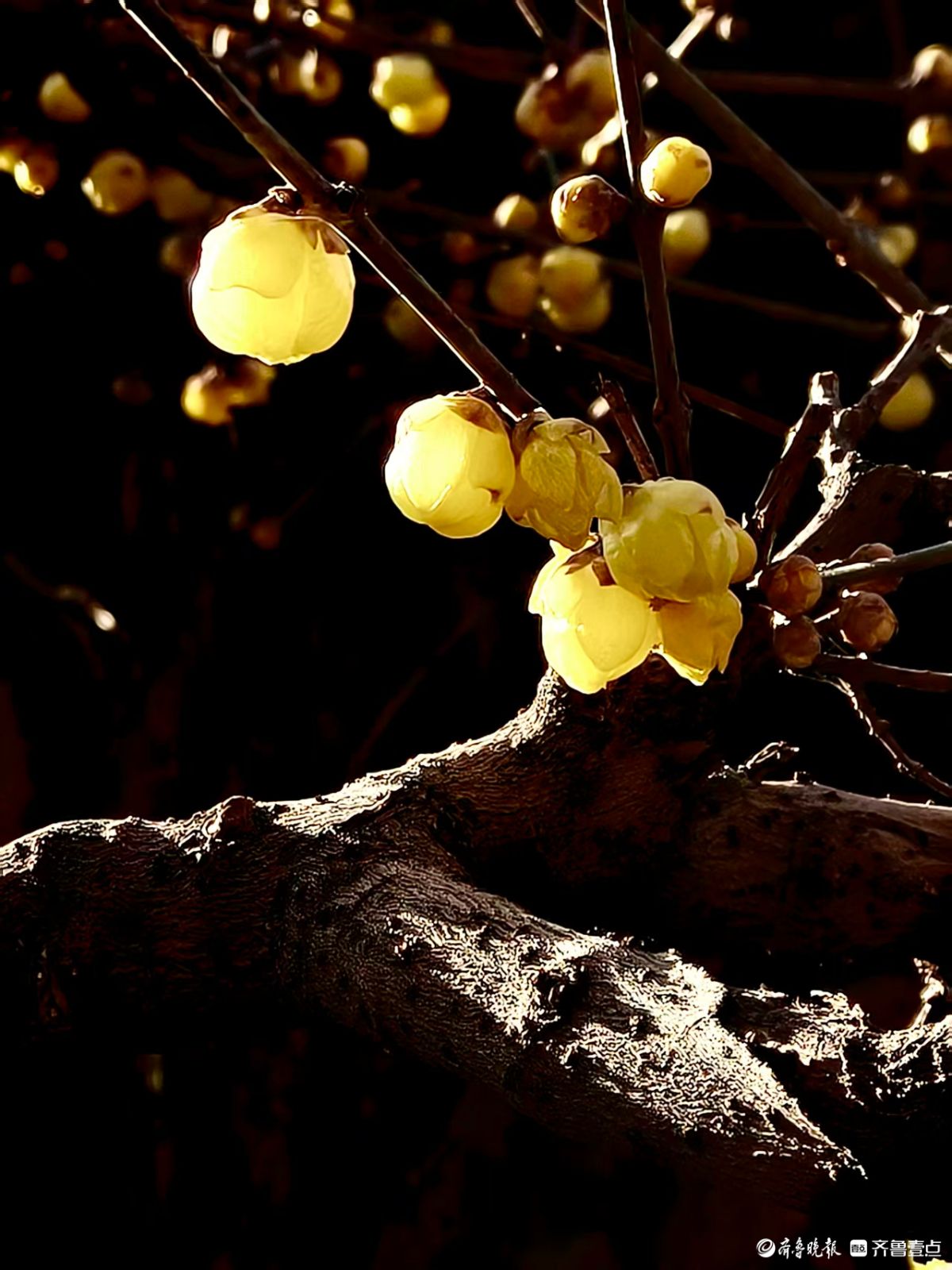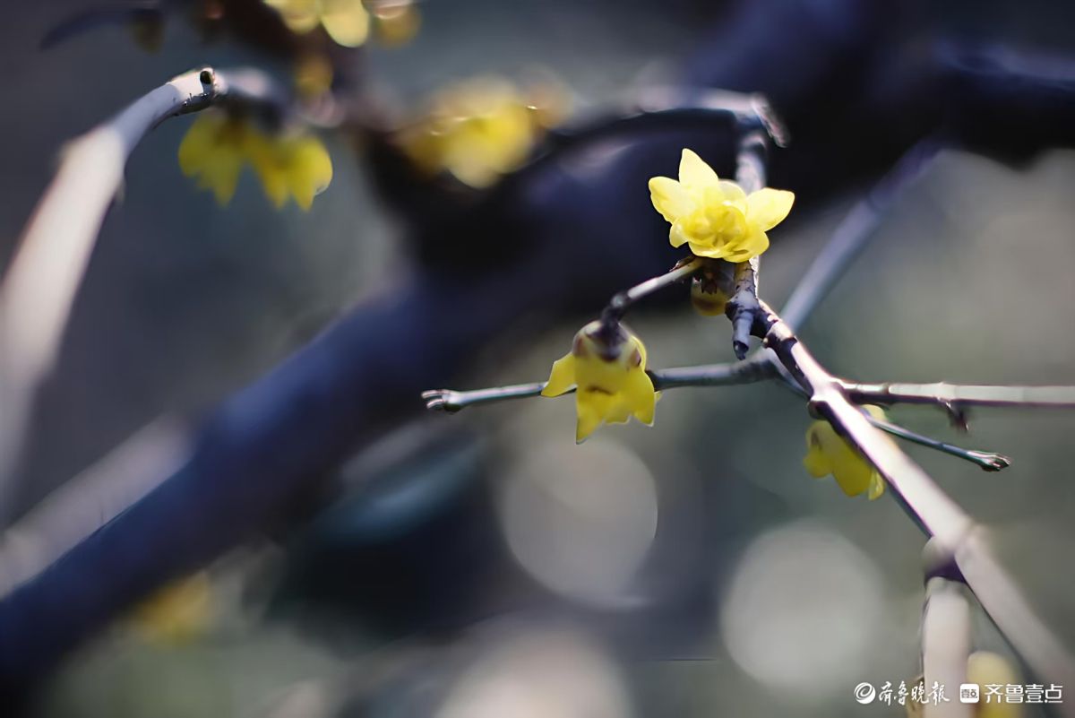 冬阳金蜡映幽枝