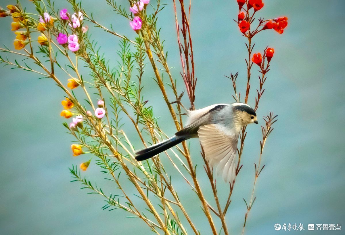 穿梭在风蜡花间的小山雀