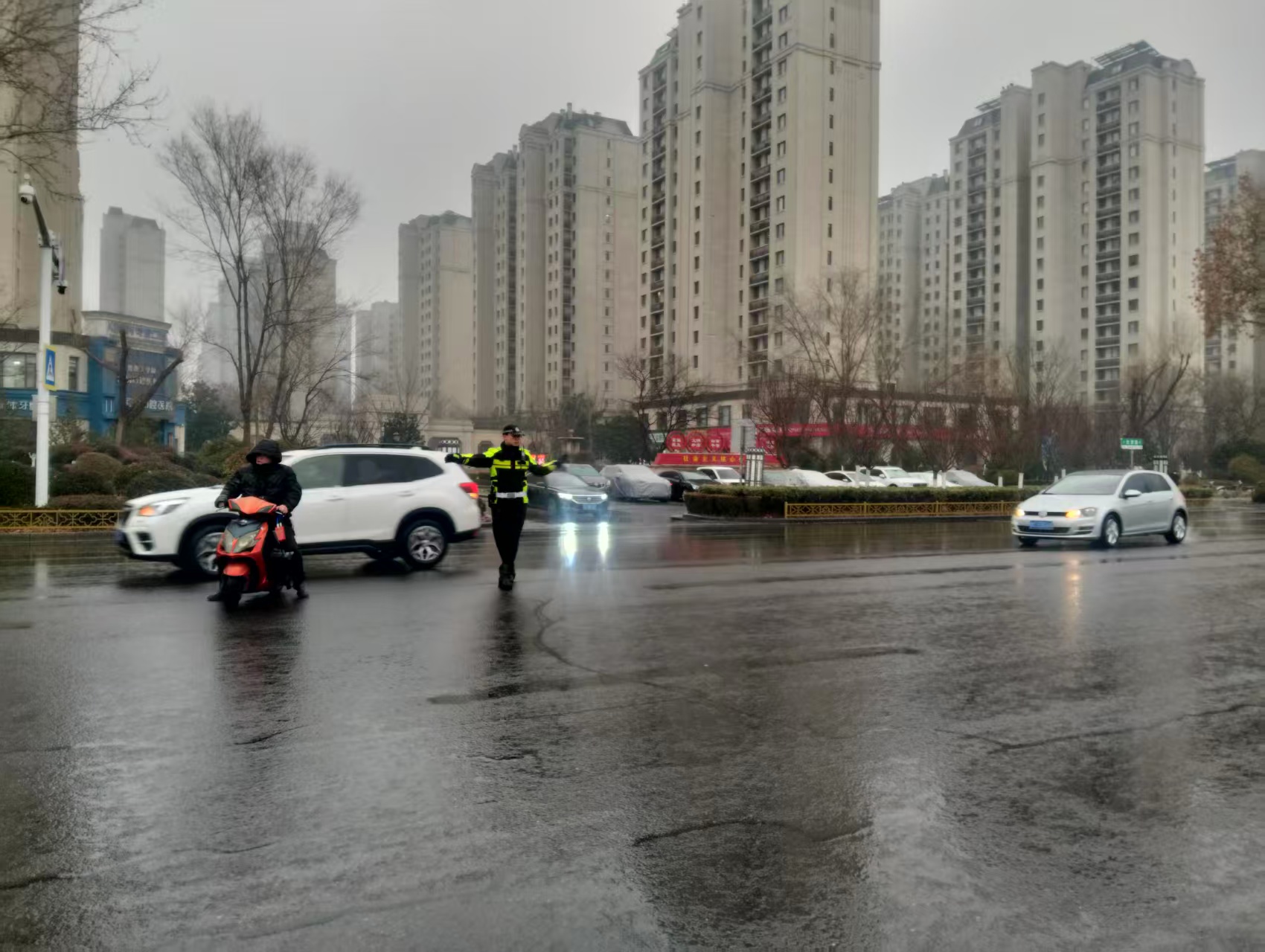 寒潮来袭雨雪纷飞 淄博交警启动应急预案护航道路平安畅通