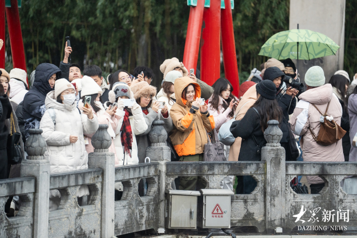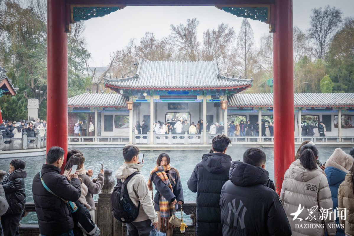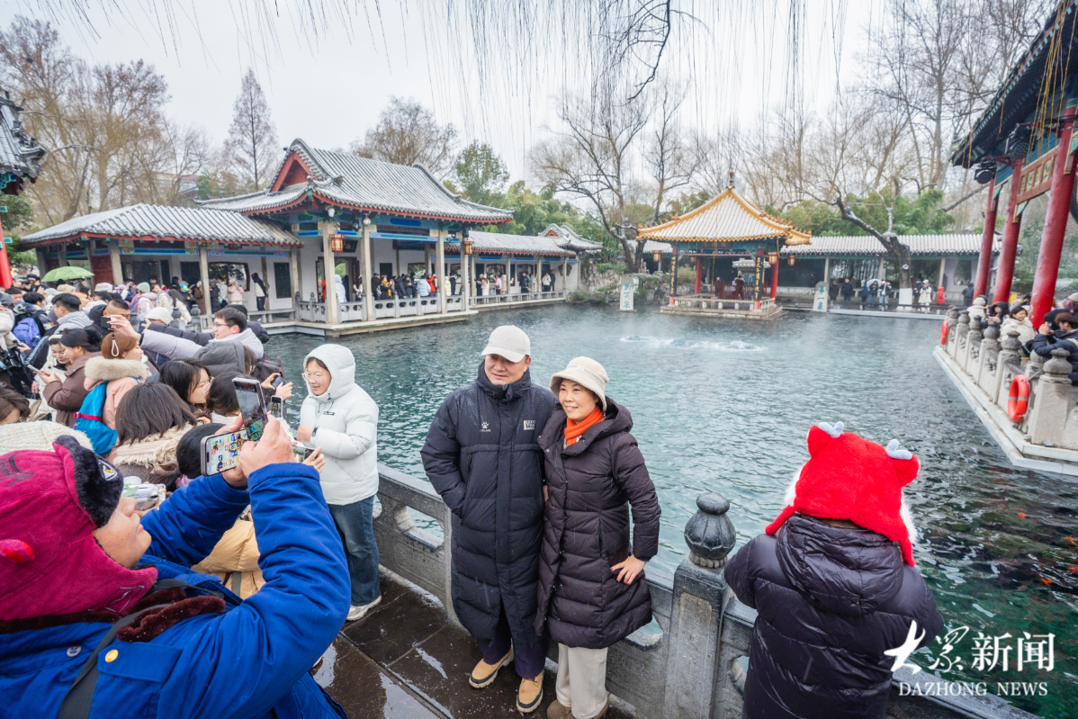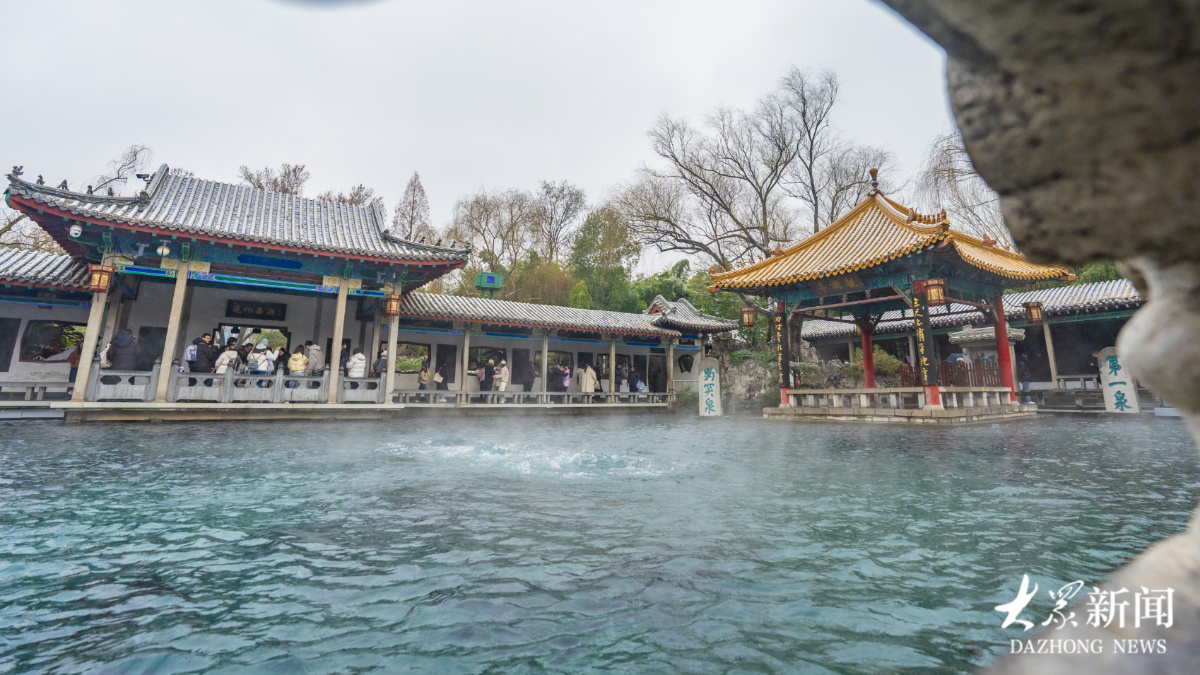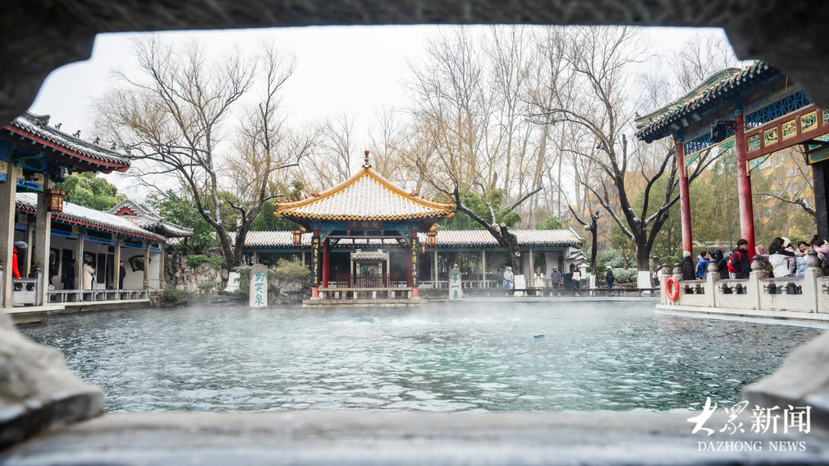 1月18日,济南迎来寒潮天气,气温下降并迎来了2026年首场降雪。记者从中国天气网上了解到,1月15日济南最高气温达到了17℃,18日最高气温则降至-1℃,最低气温仅有-5℃。在济南天下第一泉景区趵突泉公园内,雪花飘落,泉池中升起雾气,“云雾润蒸”奇观的重现吸引了不少游客前来拍照、打卡。(大众新闻记者 毕胜)
