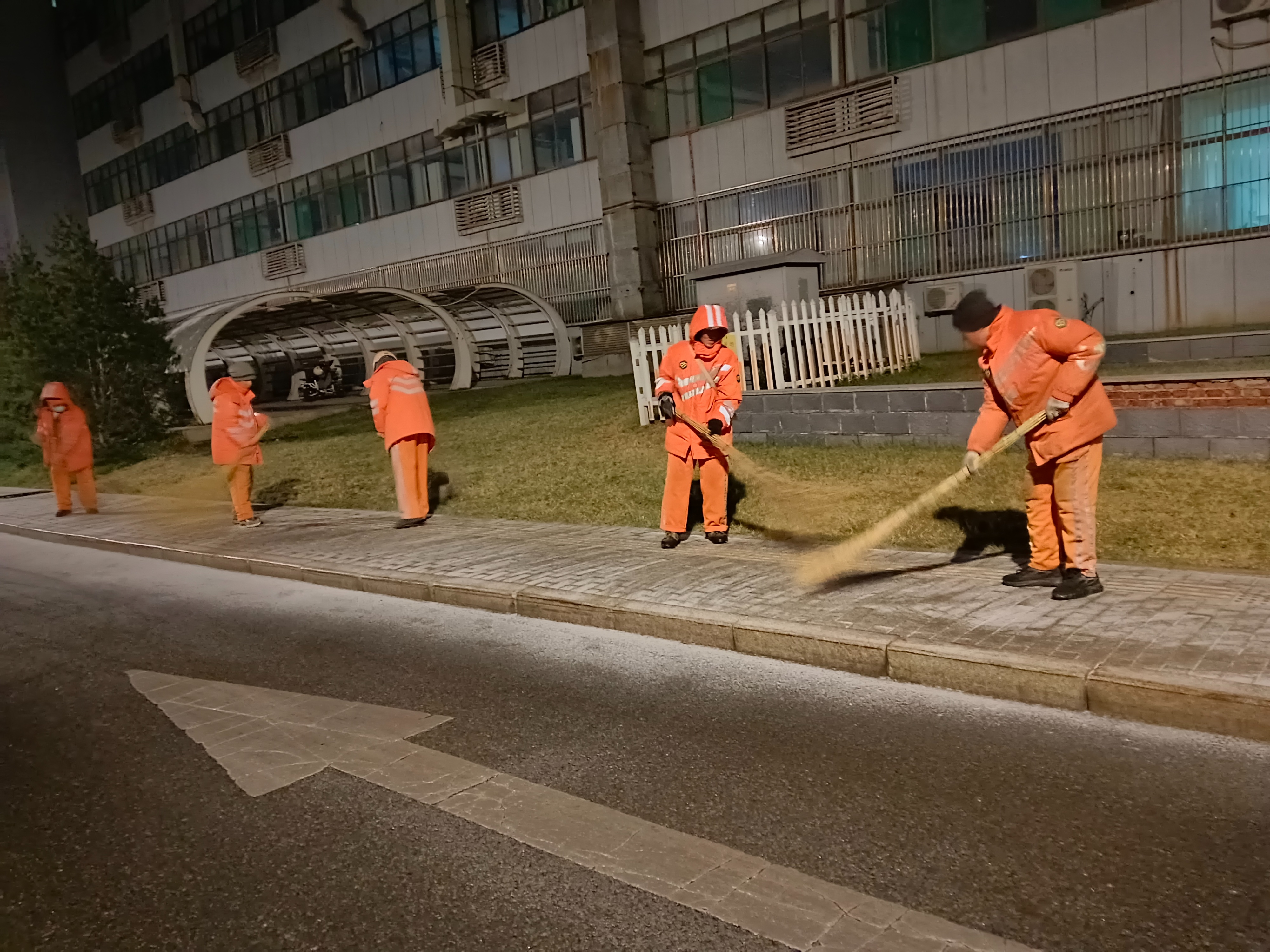 清晨6时,全体环卫工人准时到岗,迅速对人行道、公交站点、公园游园步道等机械作业难以覆盖的区域开展人工清扫,逐点清除积雪、排查隐患。18日全天,作业人员紧盯天气变化态势,针对降雪过后路面出现的积水及时清理,全力保障道路通行条件持续稳定。截至目前,累计撒布融雪剂68吨,出动机械化作业设备30余台,投入作业人员1100余人次。