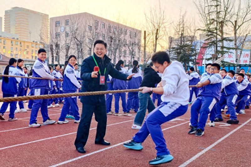 活动以拔河比赛开场,校长董亚一声令下,参赛同学紧握长绳,齐心协力,标志带在中心线两侧来回摆动,整齐的口号声回荡在操场。钟红军书记、梁英波副校长也来到现场,为同学们加油助威,场外拉拉队的呐喊声将团结奋进的氛围推向顶点。