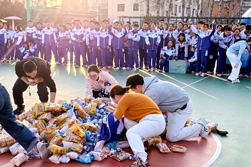 紧接着,“班主任零食大作战”环节让活动热度再升。平日严肃的班主任们变身“趣味挑战者”,在限定区域快速捡拾零食,敏捷的动作赢得学生阵阵喝彩。“老师加油!”“班主任最棒!”的欢呼声此起彼伏,现场化作欢乐的海洋,师生情谊在互动中愈发深厚。