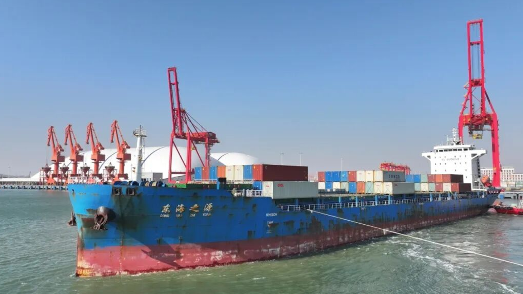 东营港一突堤集装箱码头内外贸同船航线成功首航