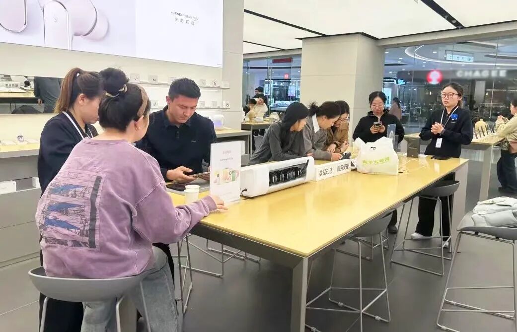 在喀什东城万达广场某品牌店,不少消费者驻足挑选数码产品。喀什市融媒体中心 供图
