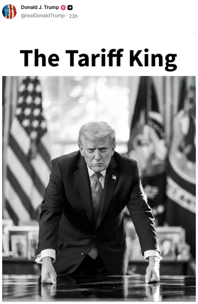 特朗普发布个人黑白照:我是“关税之王”