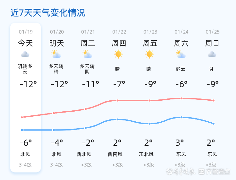 未来三天,滨州地区天气趋势为多云转阴,随后转为晴好。气温方面,最低气温在-11℃至-12℃之间,最高气温在-2℃至-6℃之间,整体温度持续偏低。特别提醒市民,未来三天内,风力较大,部分时段可能出现西北风,建议市民出行时注意防风保暖,谨防感冒。