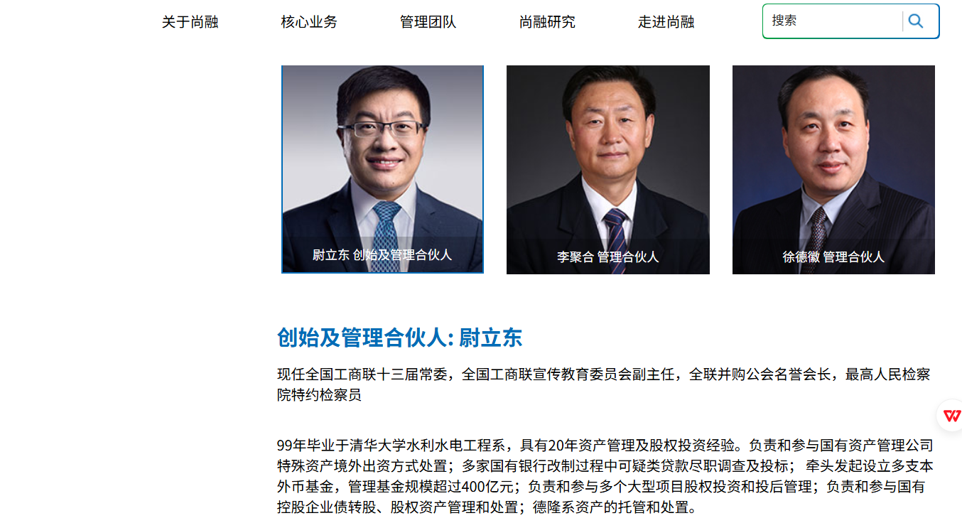 另据北京尚融资本管理有限公司官网,尉立东1999年毕业于清华大学水利水电工程系,具有20年资产管理及股权投资经验。