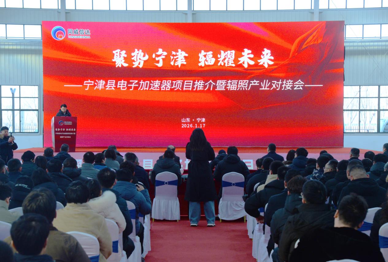 1月17日,山东省德州市宁津县电子加速器项目推介暨辐照产业对接会举行,标志着这一由清华大学联合同方威视建设的国家级高新技术产业项目正式落地宁津。