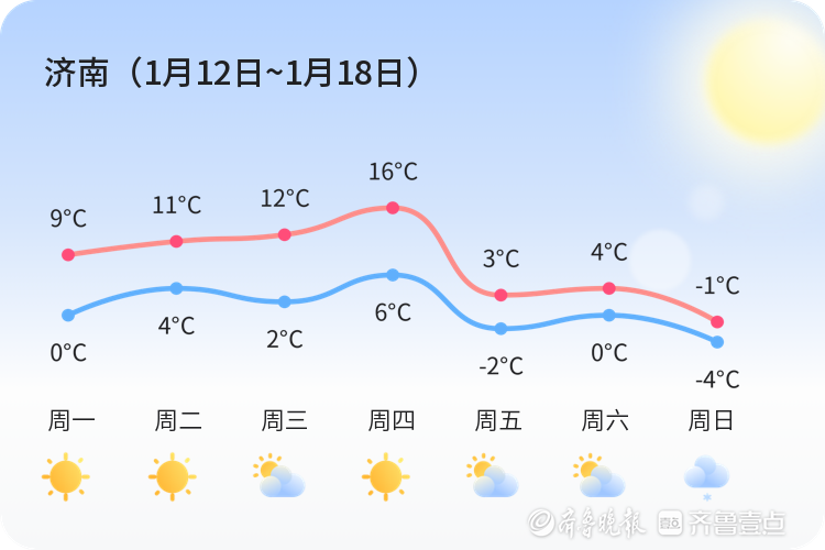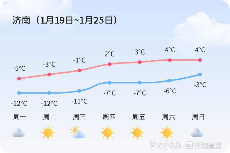 全市周平均最高温0℃,平均最低温-8℃,平均气温-3℃,周最高气温4℃,出现在周六、周日,周最低温-12℃,出现在周一、周二。