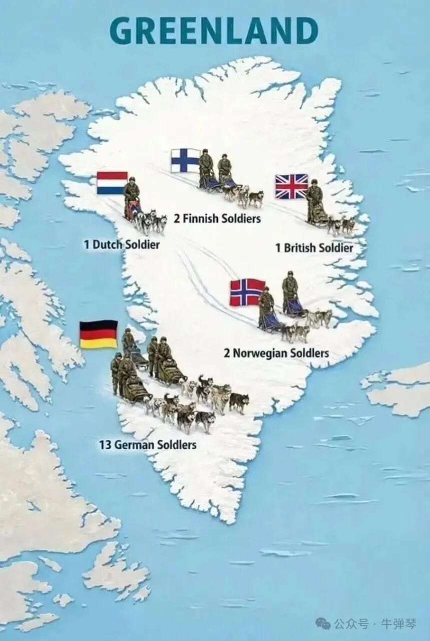 看欧洲媒体的报道,1月16日,德国匆匆忙忙派了13名士兵去演习;第二天,特朗普发出了关税威胁;第三天,即1月18日,德国士兵就紧急撤离了格陵兰岛。