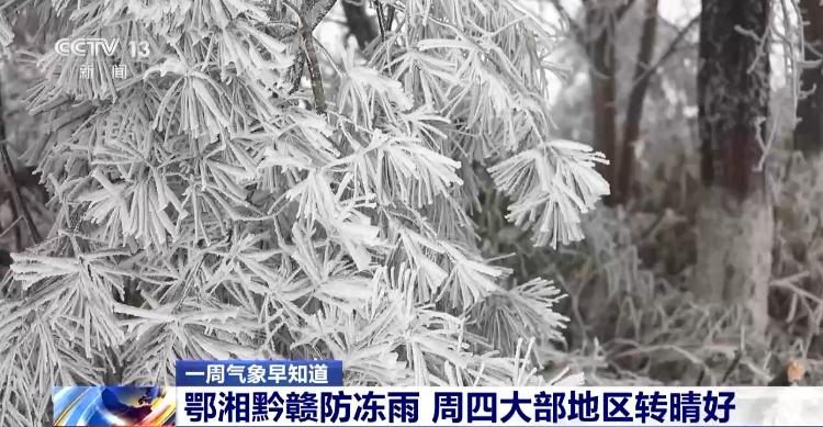 在更南的地区则需要防范大范围的冻雨,像湖北中部,还有湖南、贵州中南部、江西北部,在周一周二的时候会陆续出现冻雨,冻雨看似下的是雨,但是一旦落地就会出现冻结成冰的情况,而且不易被察觉,对道路交通的危害很大,需要及时清除,预计22日也就是周四,我国大部会恢复雨雪稀少的天气格局。