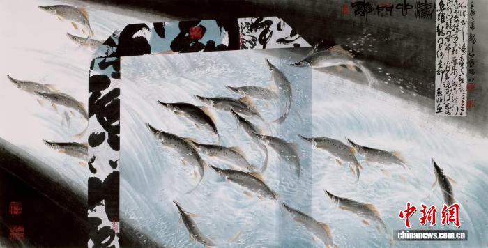 图为林章湖画作《鱼跃龙门》。(受访者供图)