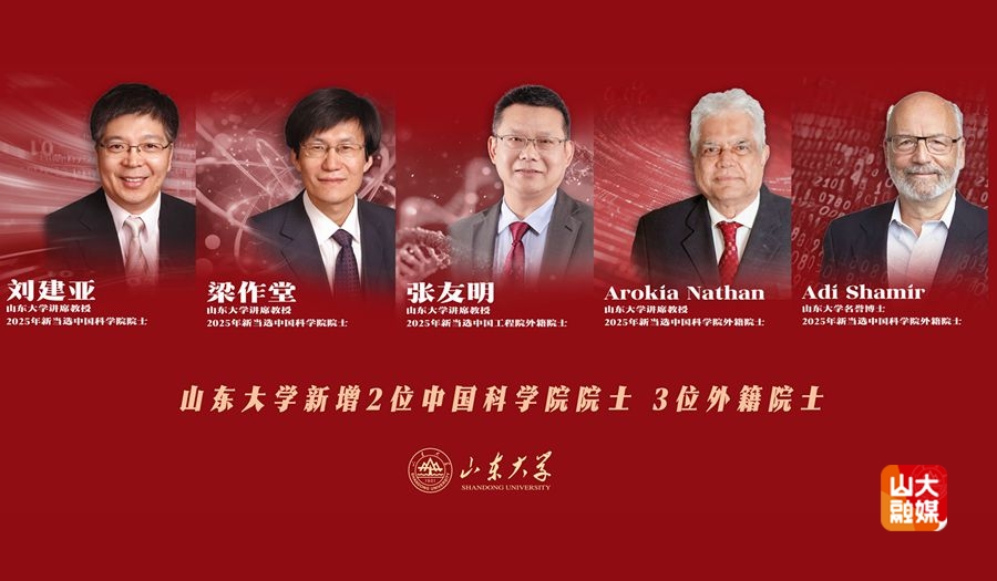 2025年11月21日,中国科学院、中国工程院2025年院士增选结果公布。山东大学教授刘建亚、梁作堂当选为中国科学院院士,山东大学教授张友明当选为中国工程院外籍院士,山东大学教授Arokia Nathan、名誉博士Adi Shamir当选为中国科学院外籍院士。2025年9月,山东大学轻质工程材料与加工技术教师团队成功入选第四批“全国高校黄大年式教师团队”。山东大学战略科学家和领军人才队伍实现跨越式增长,青年人才规模持续扩大,博士后成为科研生力军,构建起“顶尖—领军—青年—后备”衔接有序的杰出人才体系,队伍建设创新活力全面激发,近悦远来的人才生态更加蓬勃。