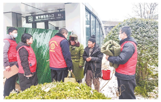 星创智汇大厦物业工作人员积极行动清扫积雪。 记者 郭超 摄