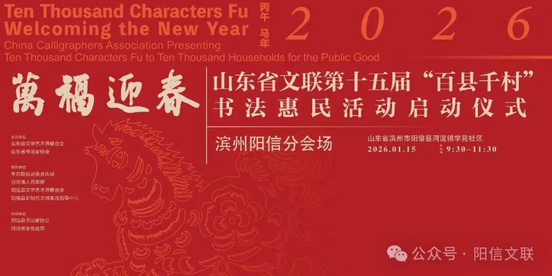 本次活动由山东省文学艺术界联合会、山东省书法家协会主办,中共阳信县委宣传部、河流镇人民政府、阳信县文学艺术界联合会、阳信县新时代文明实践指导中心承办,阳信县书法家协会、河流镇学苑社区协办。活动以文化惠民为宗旨,为当地群众送上新春祝福,正式拉开全县新春系列文化活动的序幕。