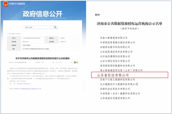 山东征信获批济南市公共数据授权运营机构
