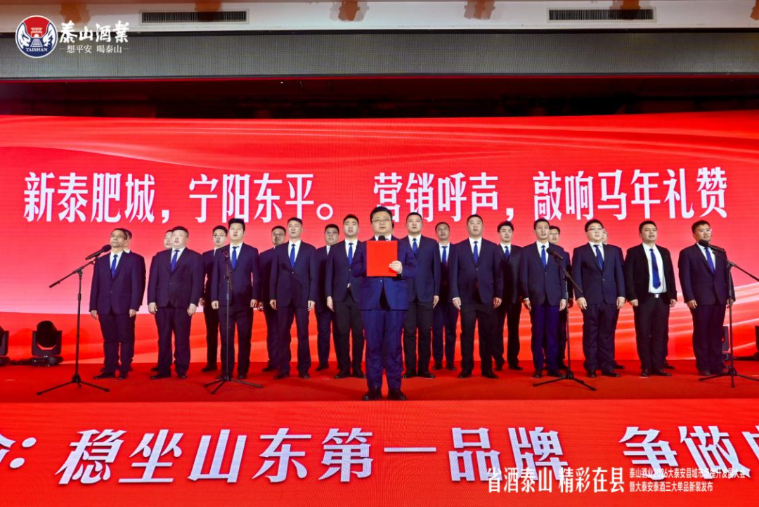 2026年1月16日,泰山酒业集团回归企业“战略根据地”,在泰安市下辖的新泰市隆重举行2026大泰安县域市场提升发展大会暨大泰安泰酒三大单品新装发布活动。
