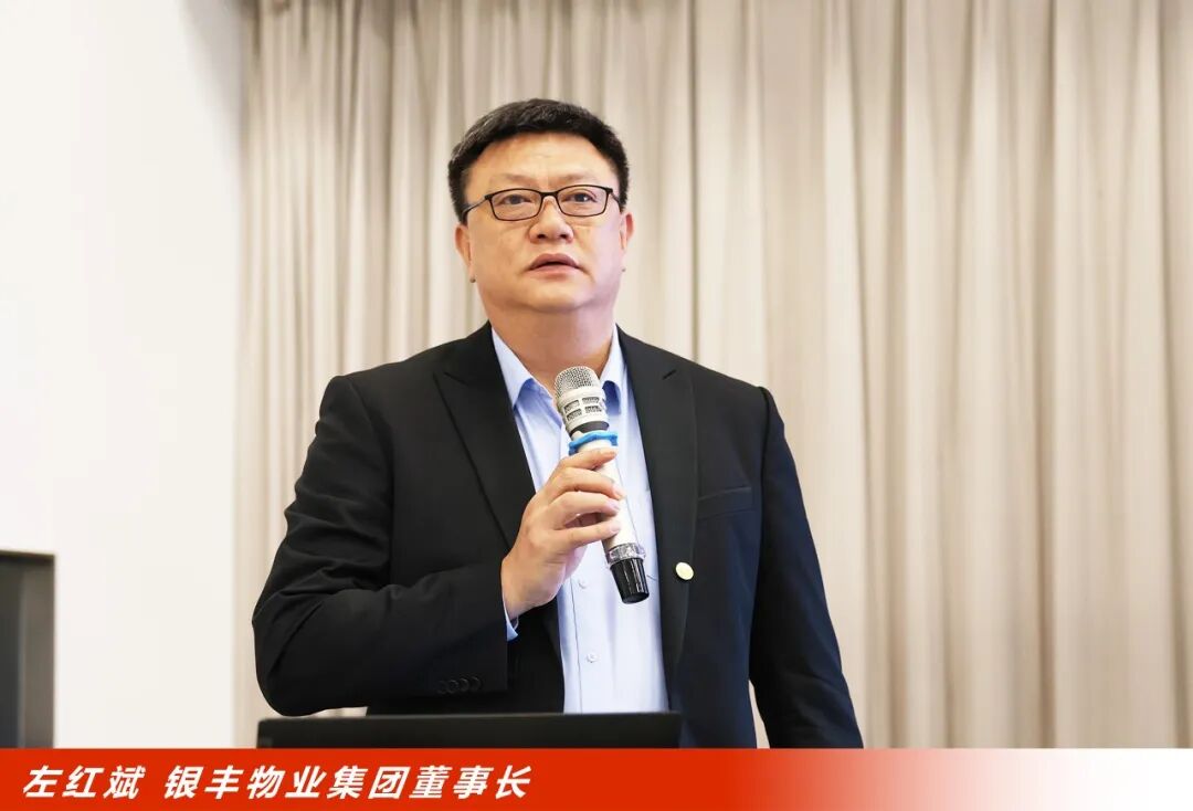 会议最后,银丰物业集团董事长左红斌致辞并作出重要指示。2025年物业集团业务拓展成效显著,多项经营指标创下历史新高,品牌价值实现持续攀升,彰显了企业强劲的发展韧性。立足新起点,董事长部署2026年三大战略重点:一是回归基础,聚焦核心业务筑牢管理根基,以标准化、精细化管理提升服务品质;二是强化人才驱动,激活组织内生动力;三是推进战略升级,积极引入国际优质服务资源,精准把握行业发展新机遇,持续巩固品牌优势,引领企业迈向更高质量的发展阶段。